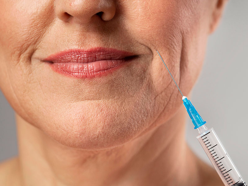 Aplicação de toxina botulínica para suavizar rugas e linhas de expressão, proporcionando um aspecto mais jovem e natural.